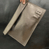 Elegant leather clutch bag with front contrast. Closing by two press buttons. For those who want it, there is the possibility of inserting a shoulder strap with metal chain. Like all our bags it can be made in many colors and can be personalized with the initials.