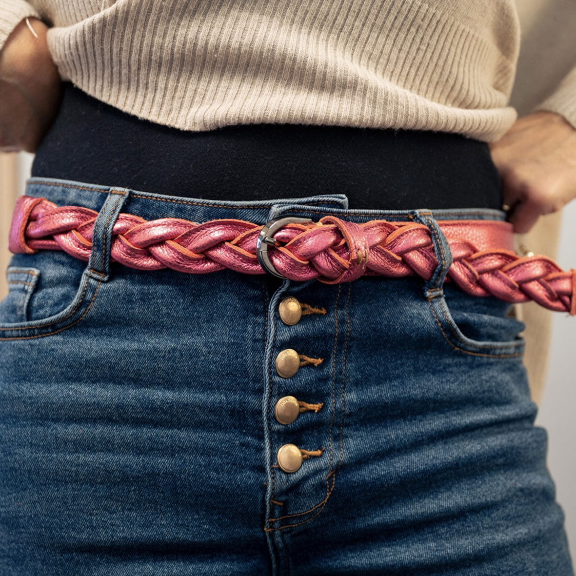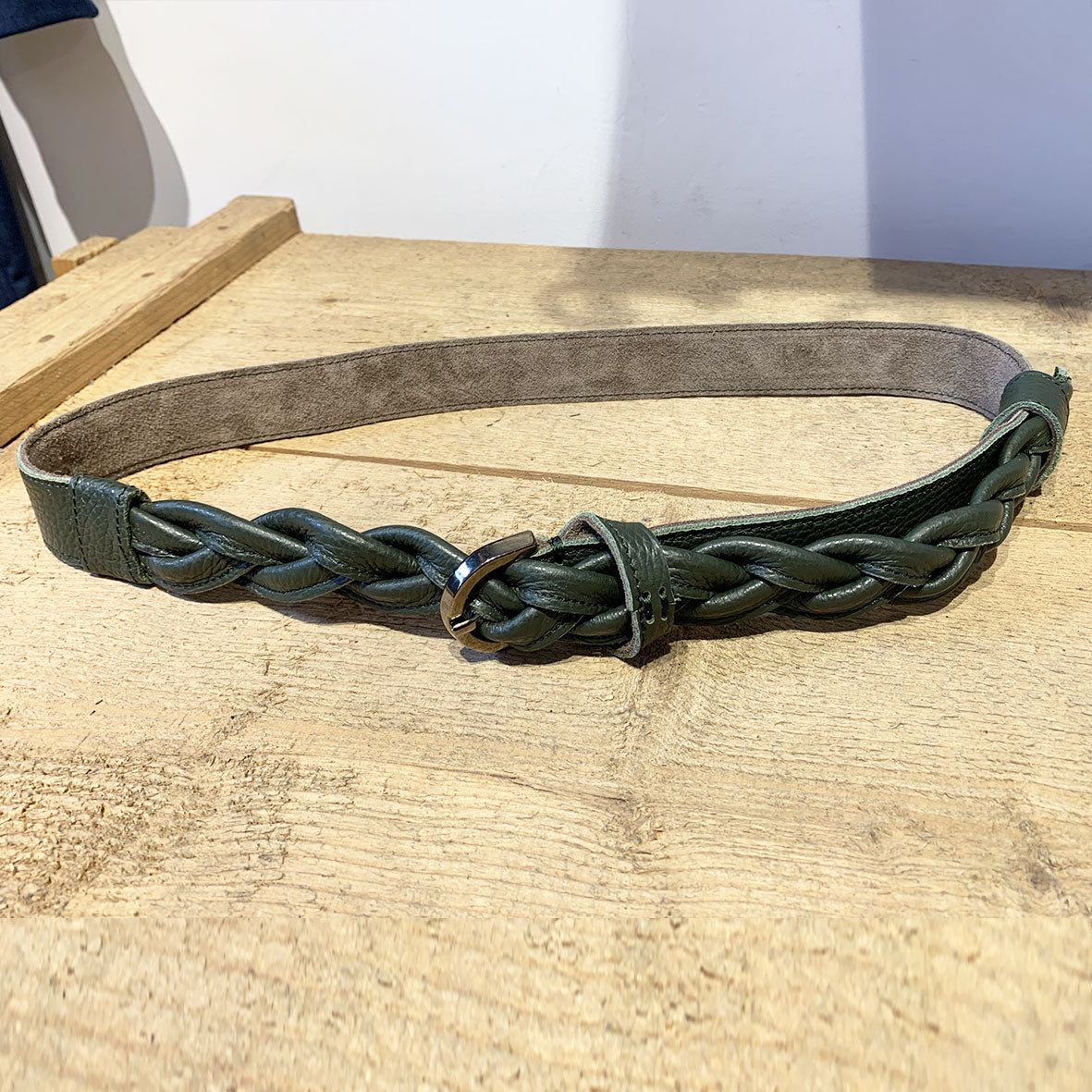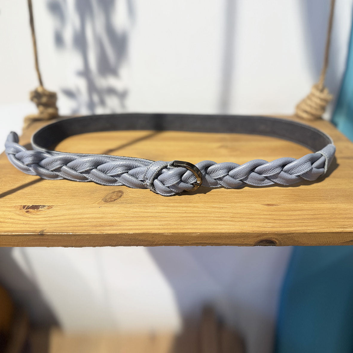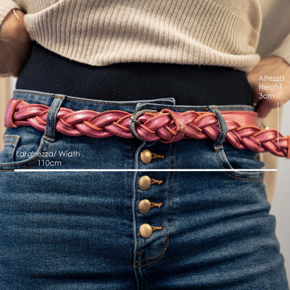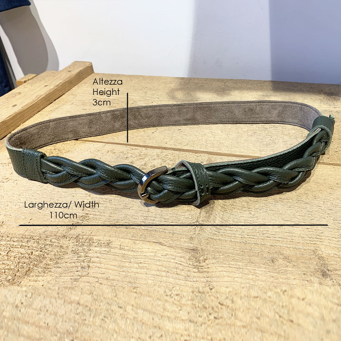 Cinta in pelle interamente realizzata a mano con fibbia in metallo e punti a mano. Dimensioni: Totale 110 cm