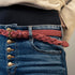 Entirely handmade leather belt with metal buckle and hand stitching.