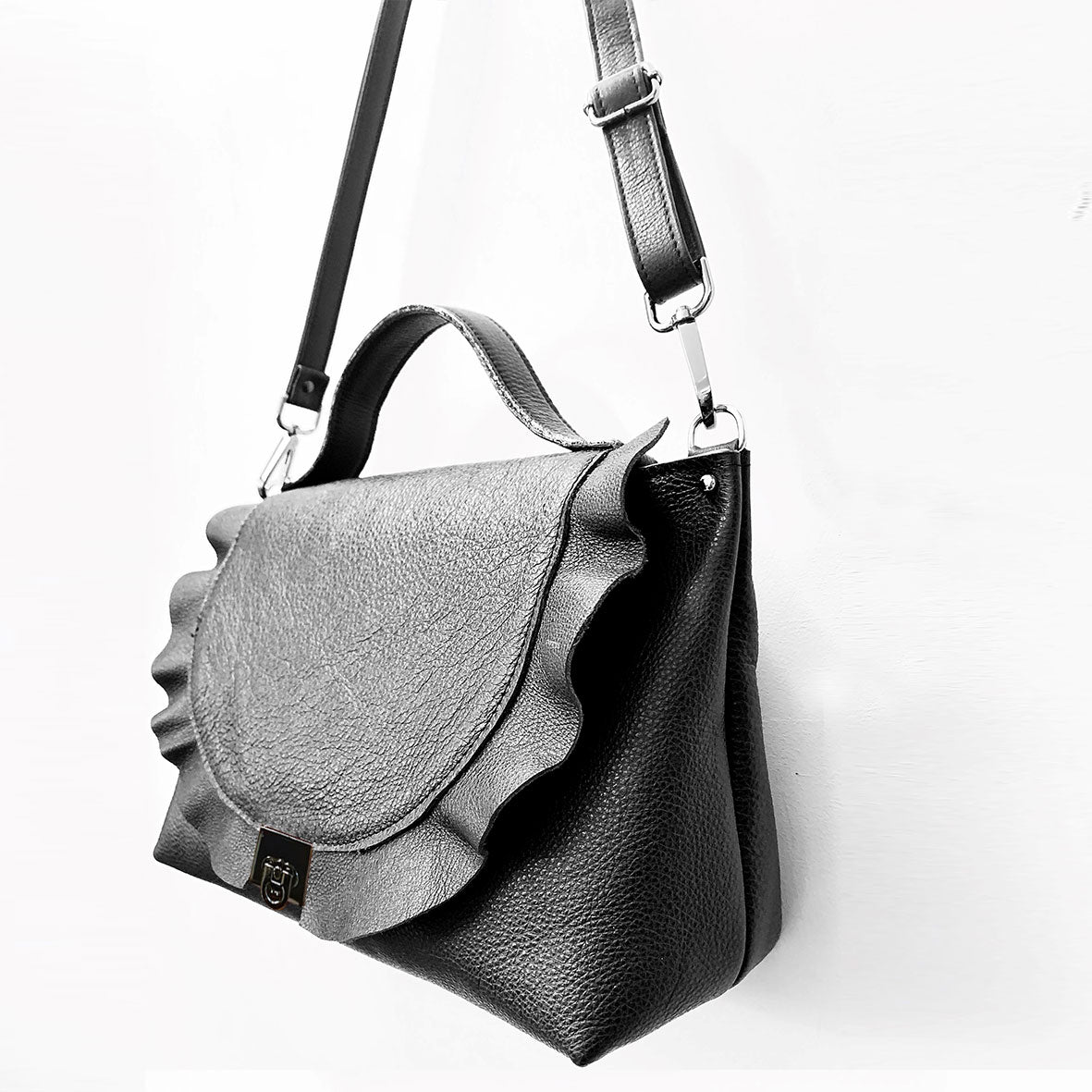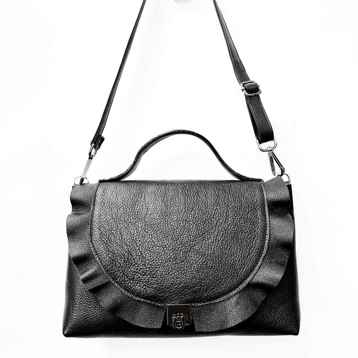 Elegante borsa in pelle con pattina sotto patta in pelle. La cartella Aida segue il disegno del nostro Raviolo ma diventa una cartella strutturate, capiente e versatile. Manico corto e Tracolla regolabile in pelle.