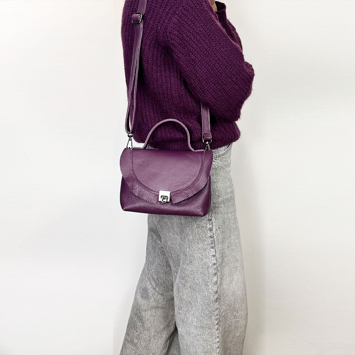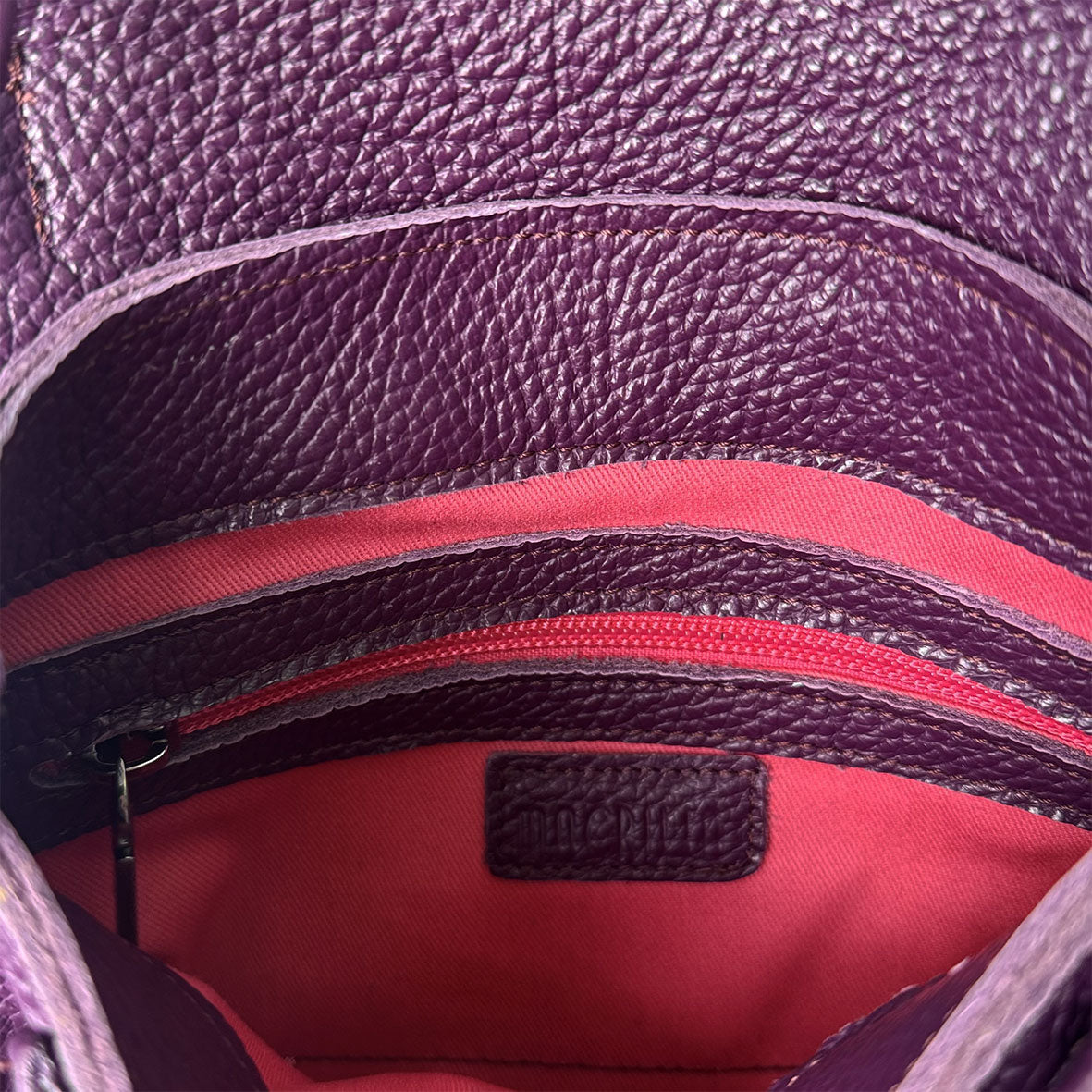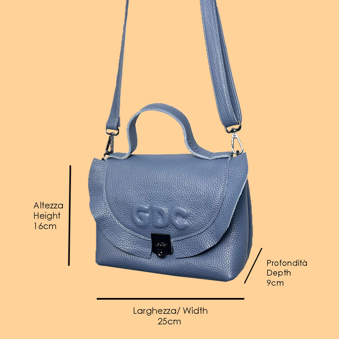 Elegante borsa in pelle con pattina sotto patta in pelle. La cartella Aida segue il disegno del nostro Raviolo ma diventa una cartella strutturate, capiente e versatile. Manico corto e Tracolla regolabile in pelle.