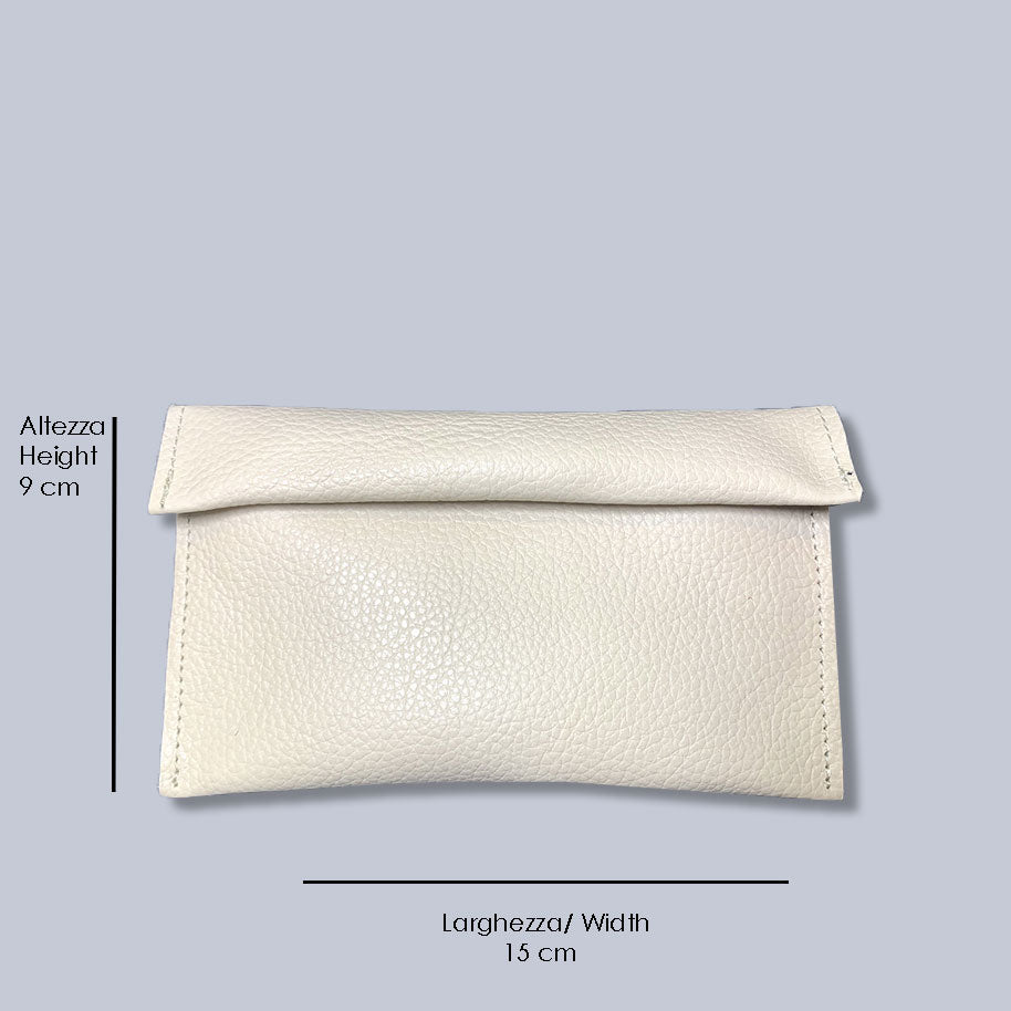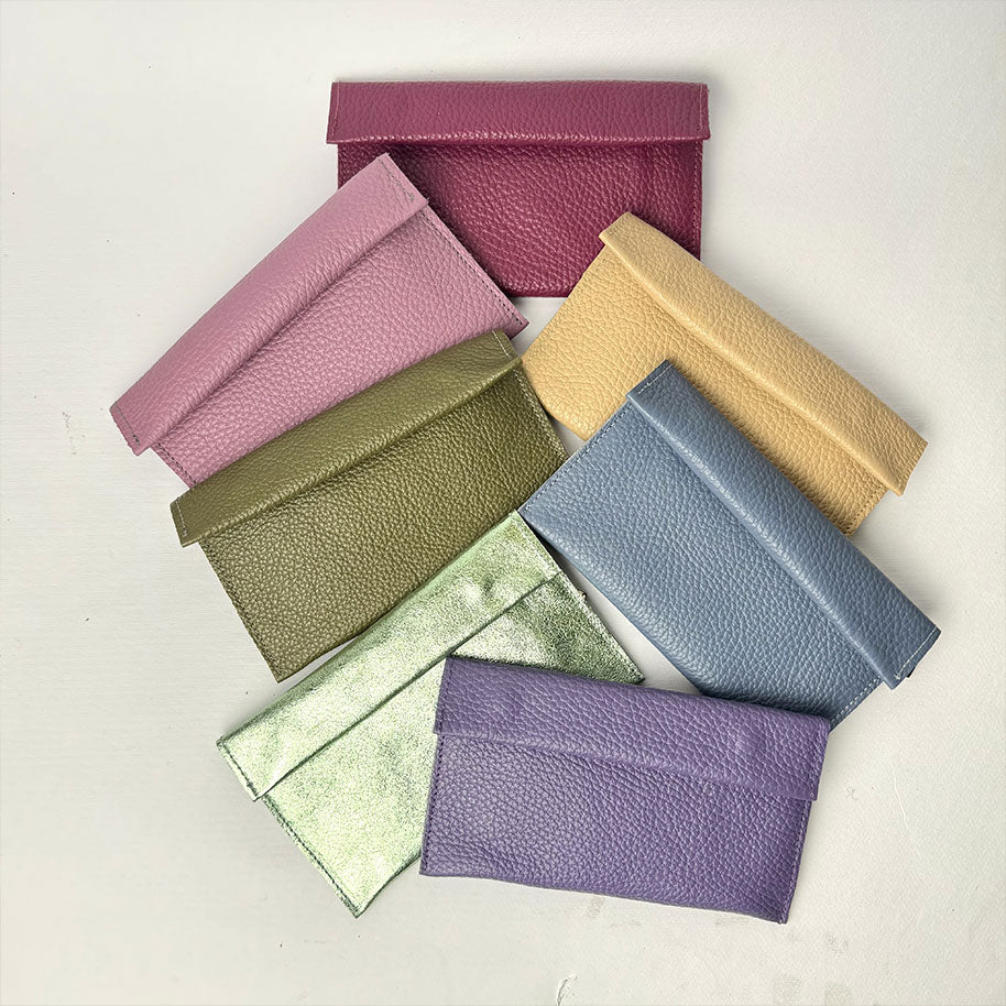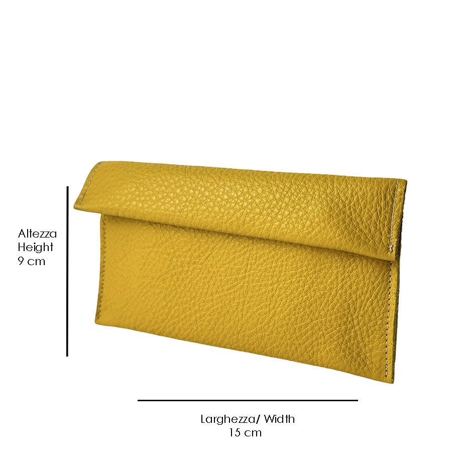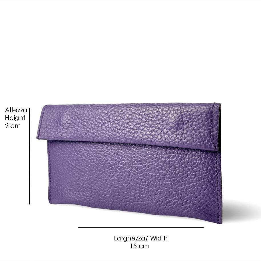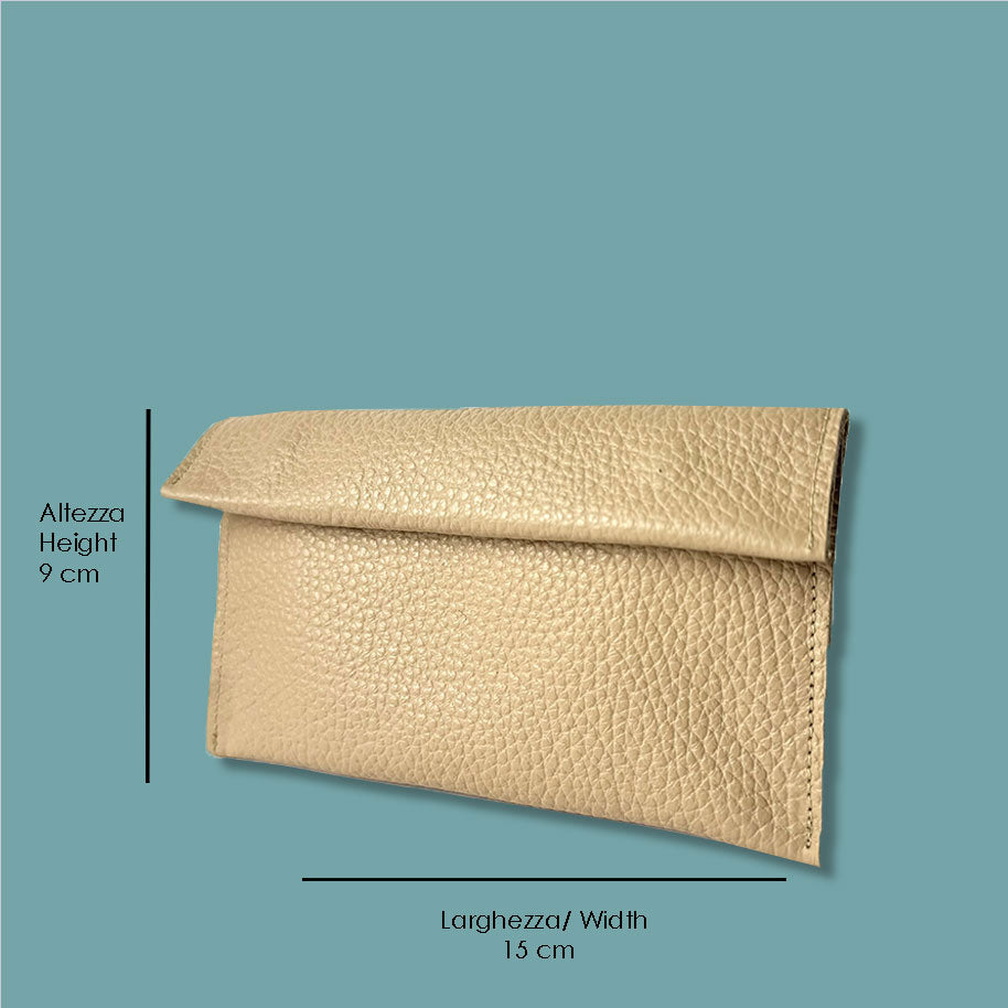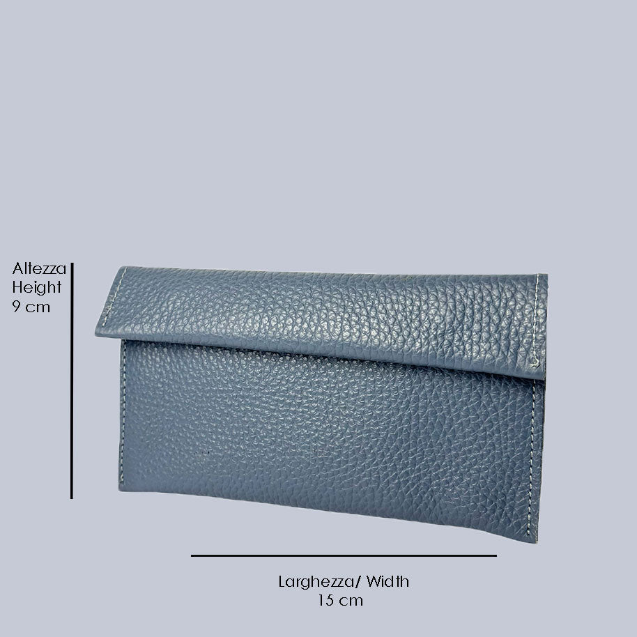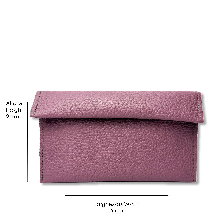 Descrizione: Portafogli in pelle destrutturato. Semplice funzionale e molto elegante, il nostro Anna Wallet ha 2 tasche porta card e una pochette esterna porta spicci, può anche essere utilizzato come pochette inserendo dentro il cellulare.