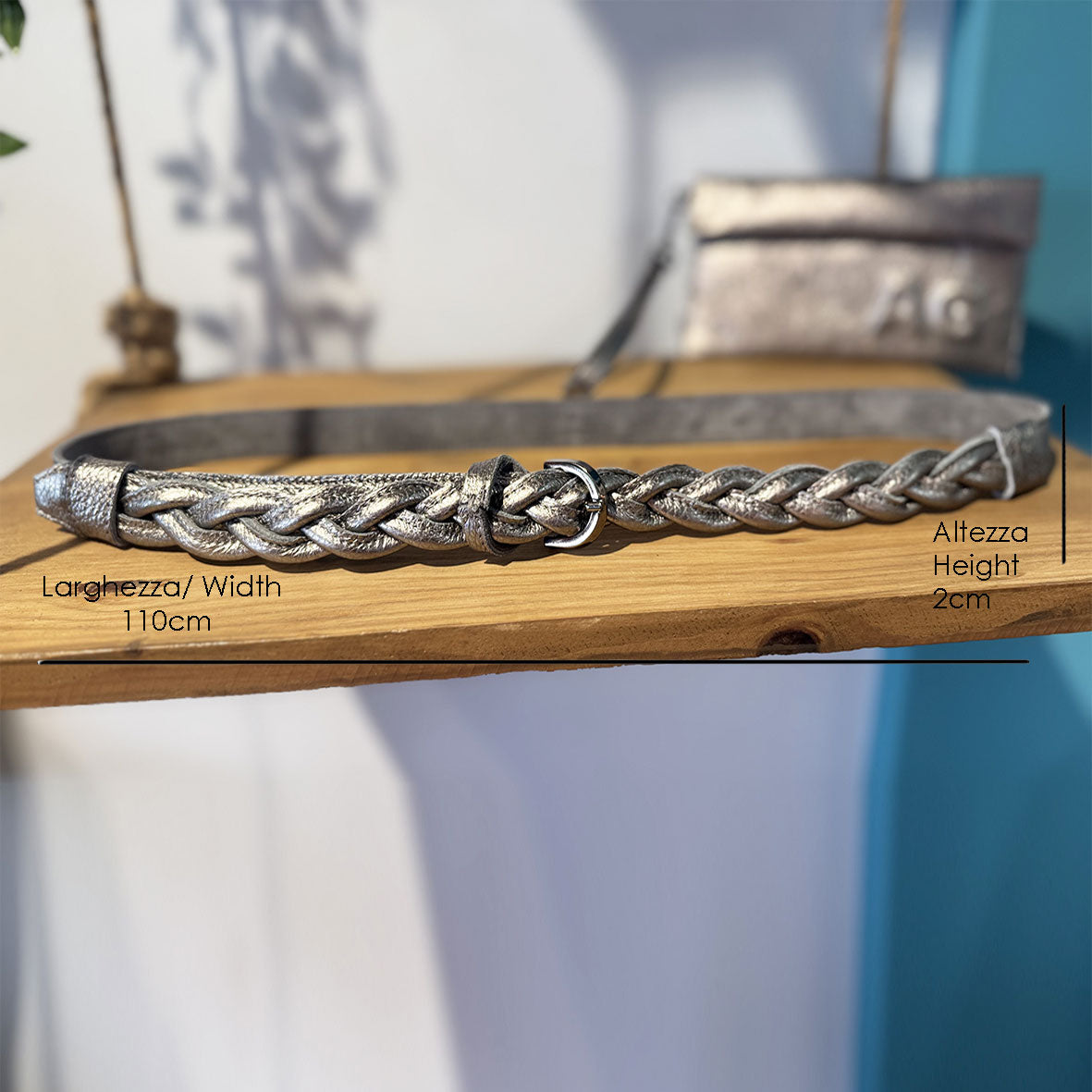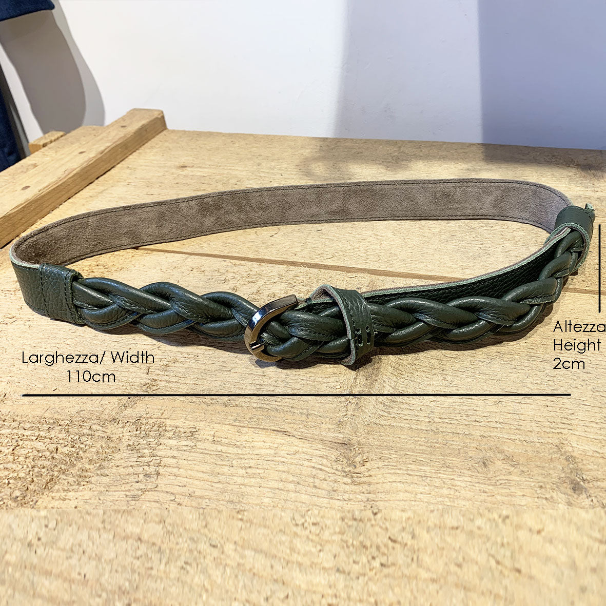 Cinta in pelle interamente realizzata a mano con fibbia in metallo e punti a mano. Dimensioni: Totale 110 cm