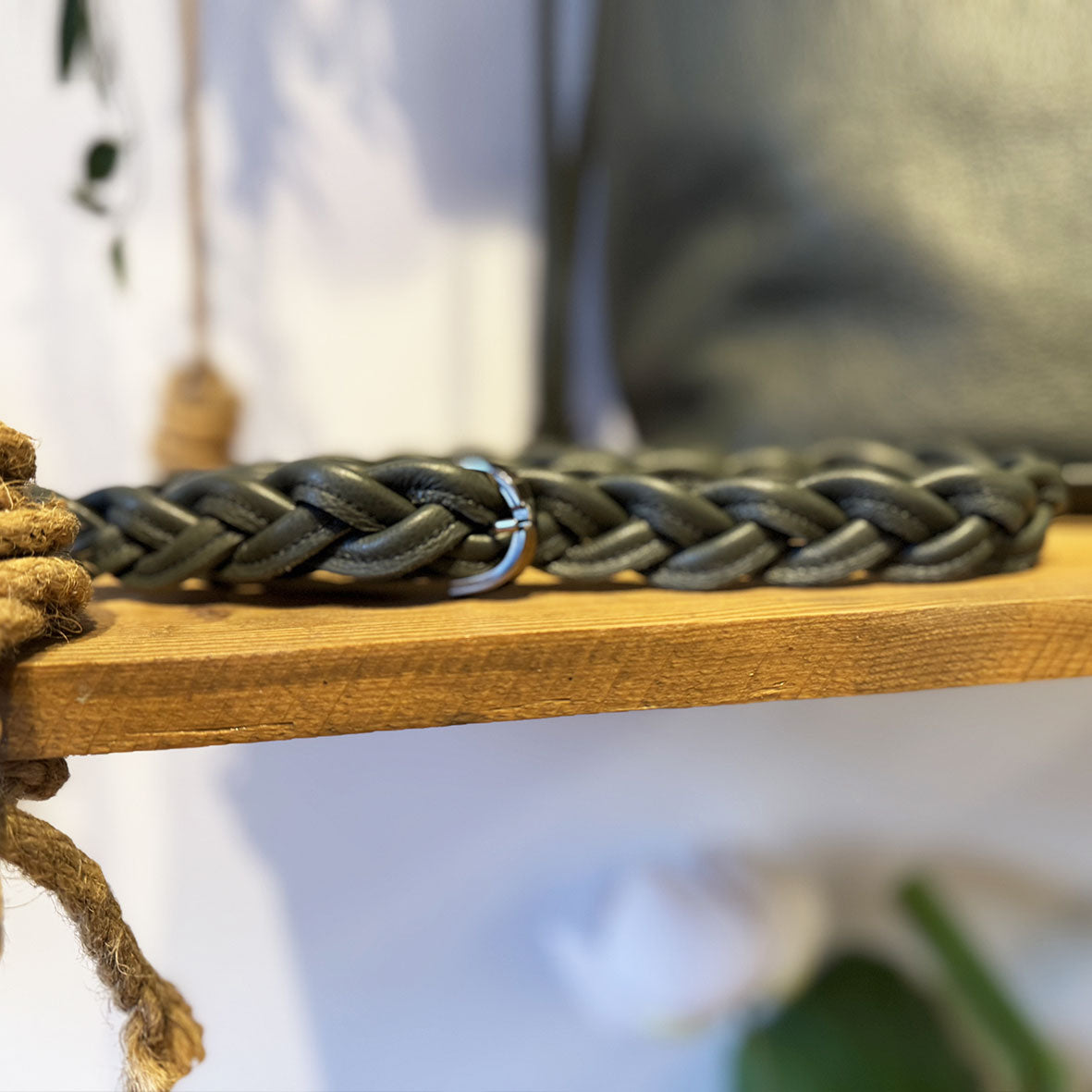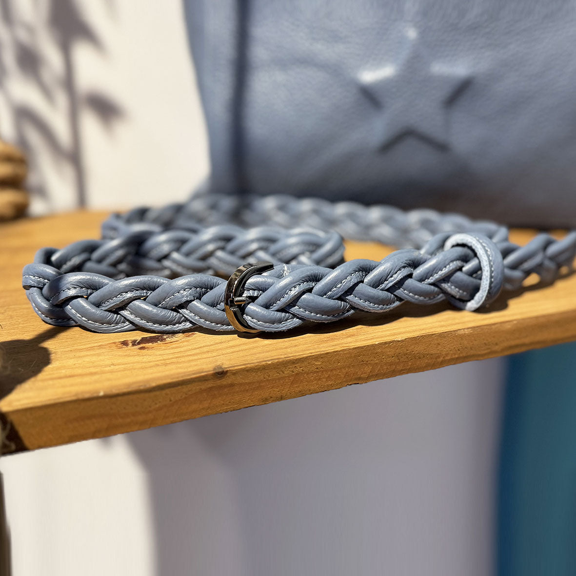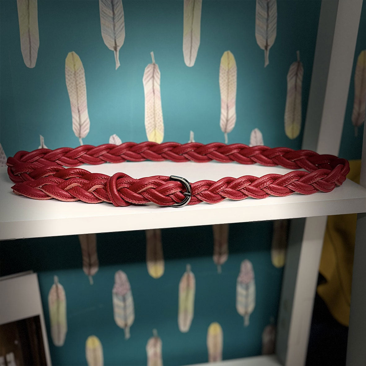 Cinta in pelle interamente realizzata a mano con fibbia in metallo e punti a mano. Dimensioni: Totale 110 cm