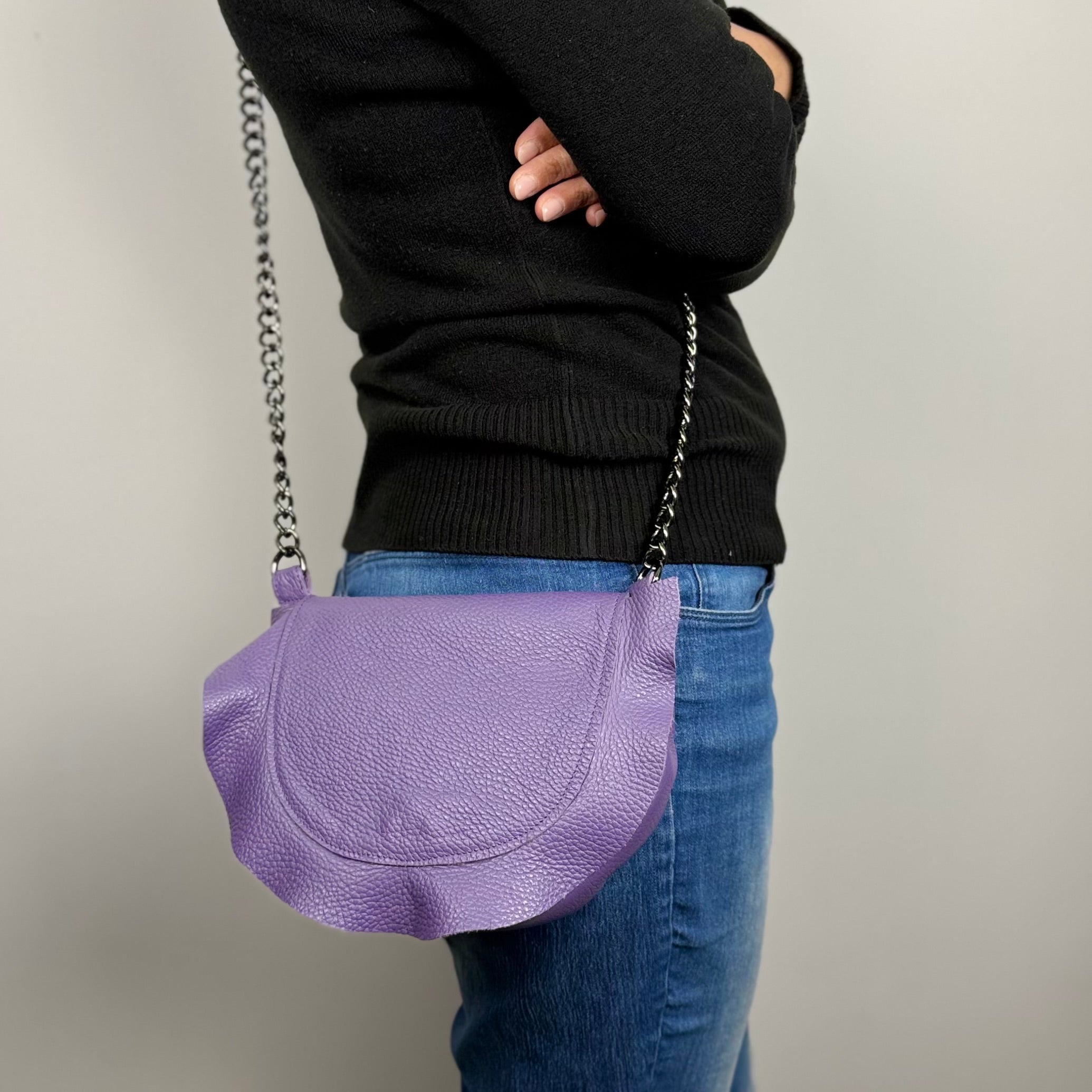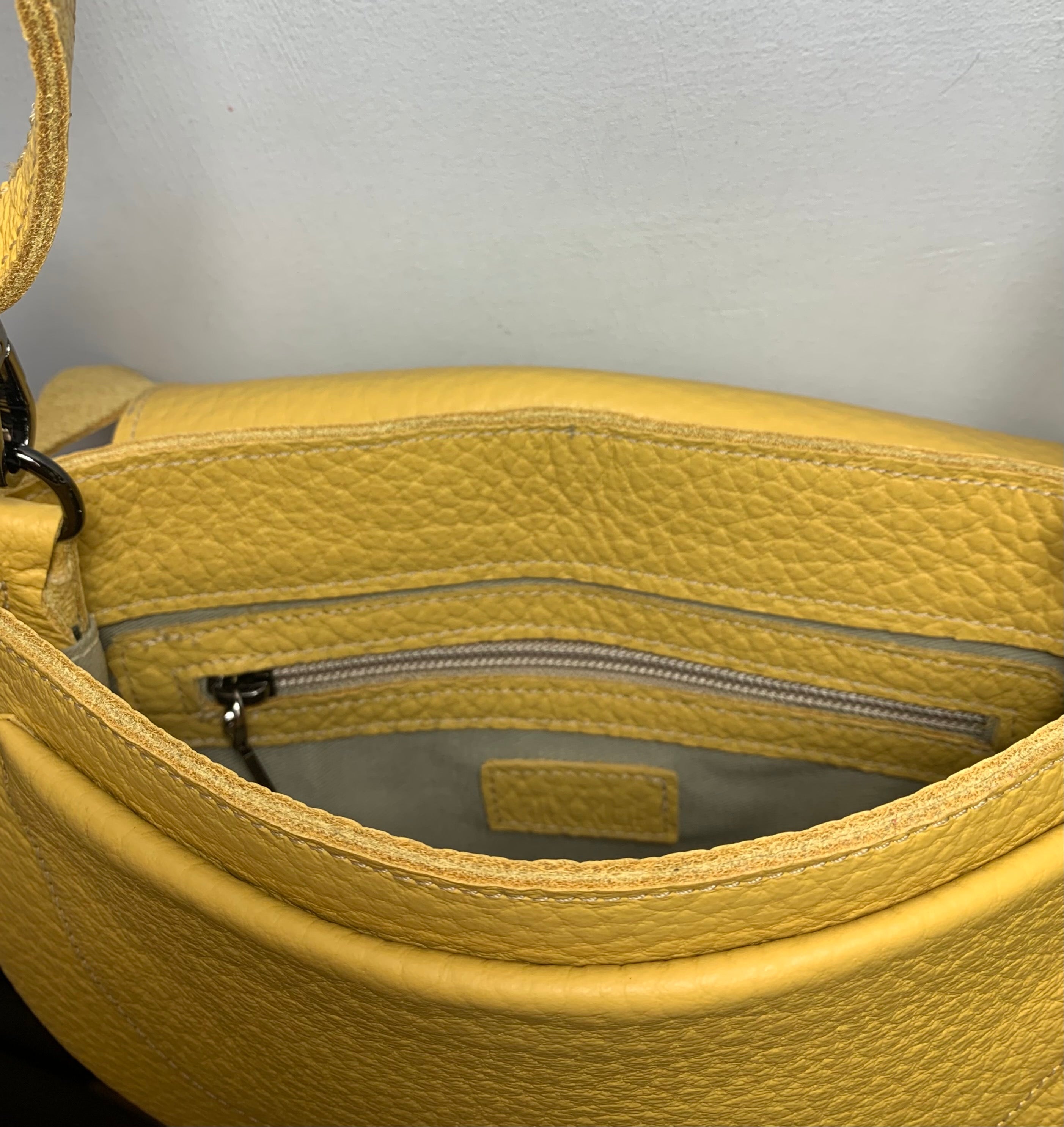 Elegante borsa in pelle con pattina e sotto patta in pelle. La Dayana ha una tasca esterna comoda come porta cellulare, una tasca interna dotata di lampo e una tracolla da 3,5 cm regolabile.