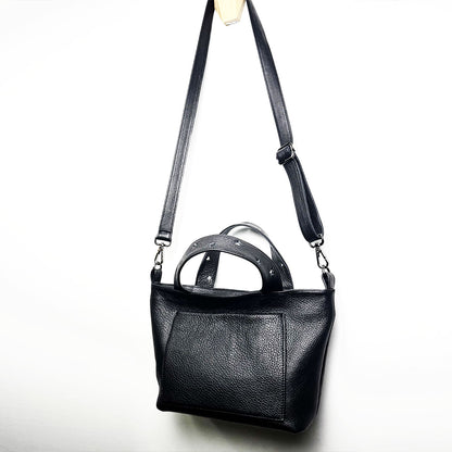 Elegante e versatile shopper in morbida pelle. Tasca esterna con bottone e tasca interna con zip.