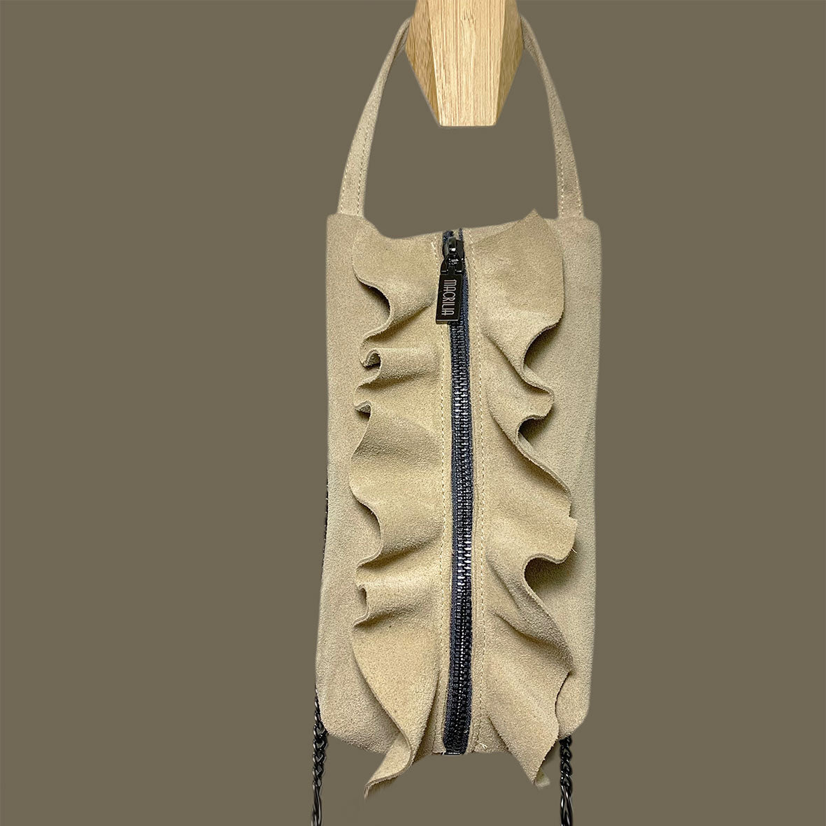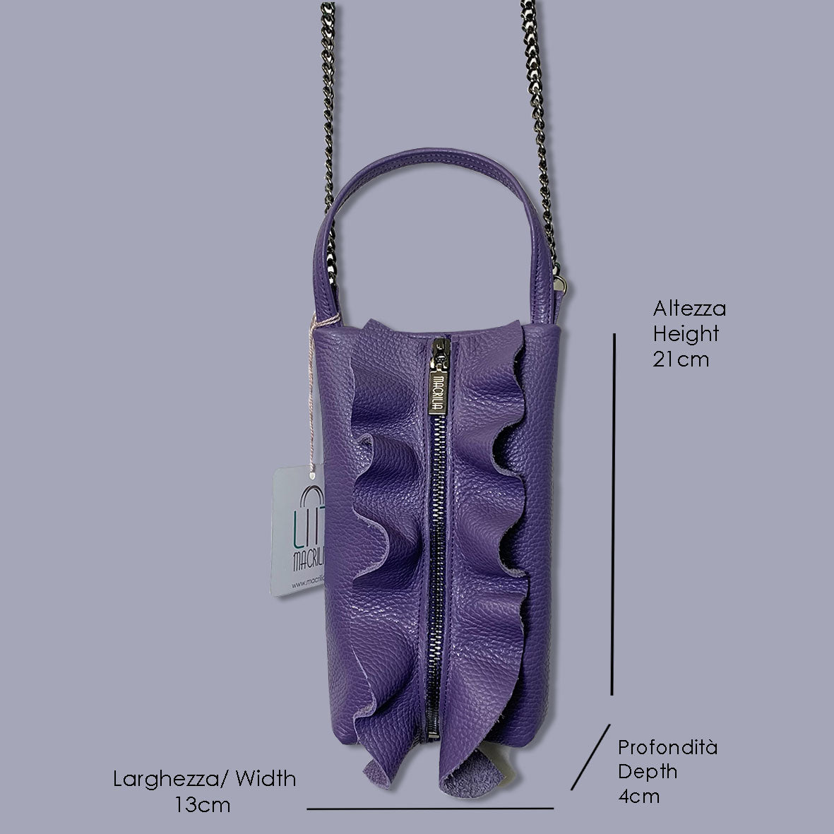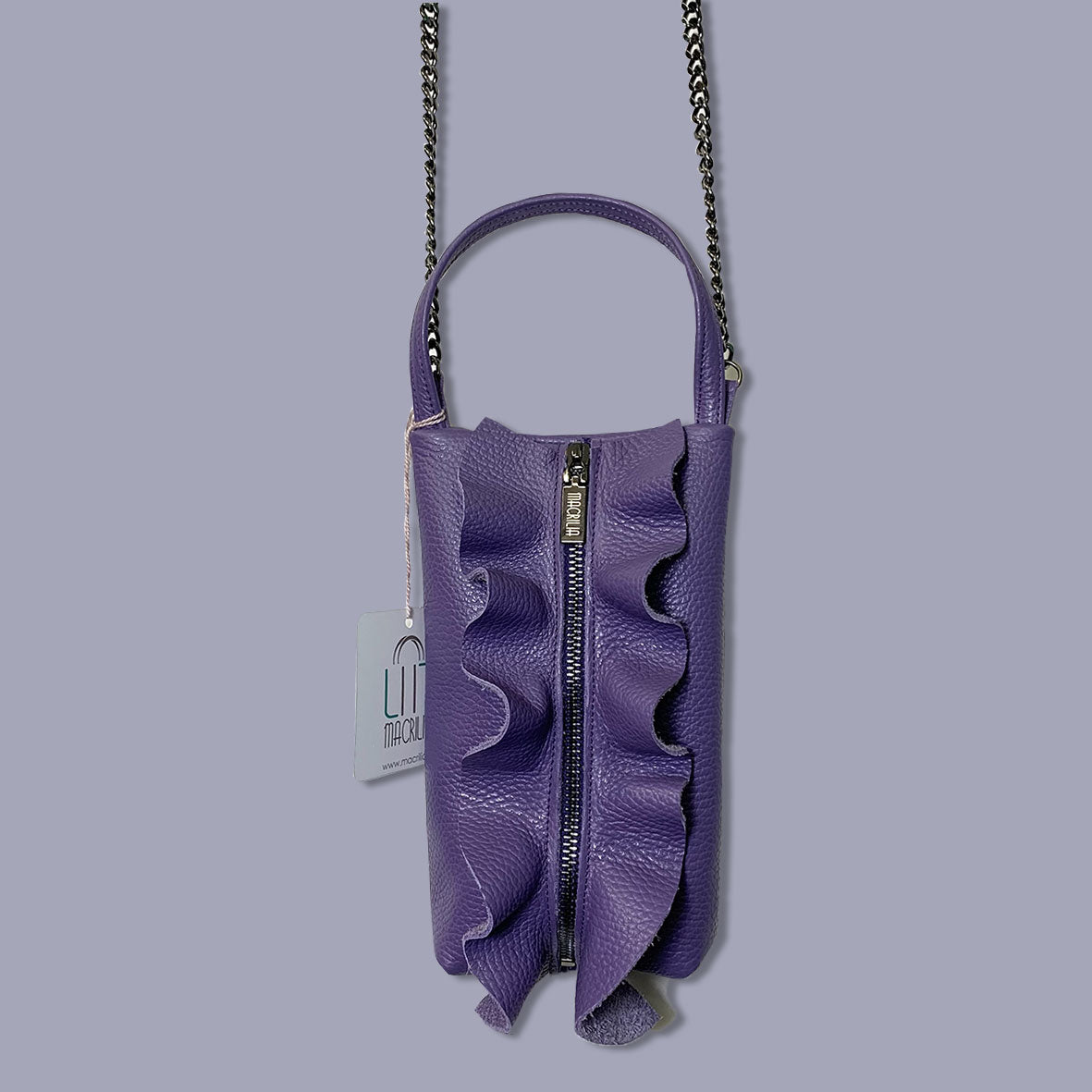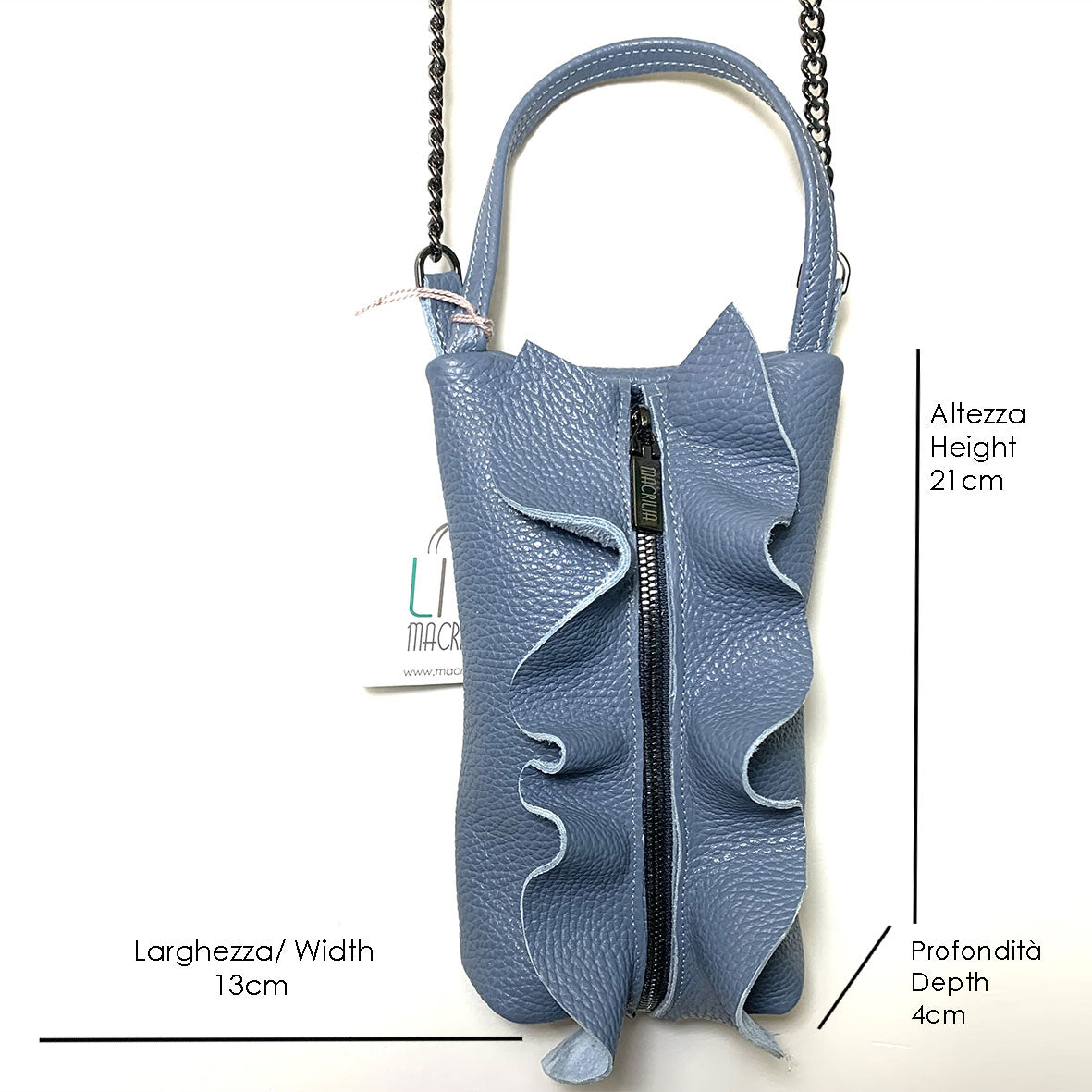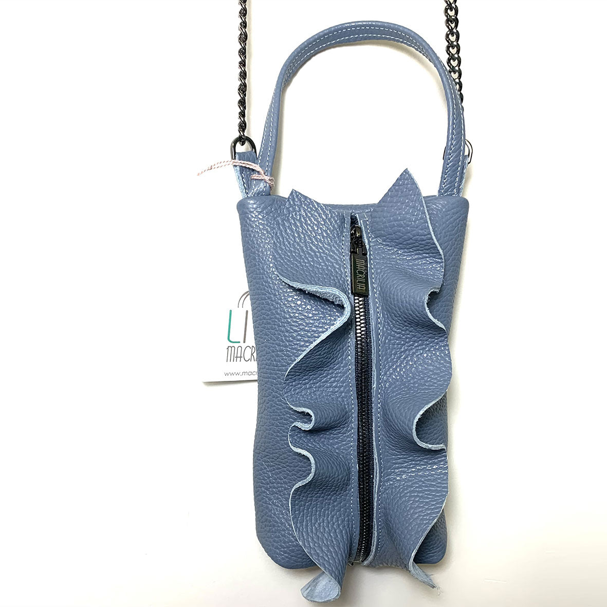 Elegante borsa in pelle. Un particolare piccolo porta cellulare .