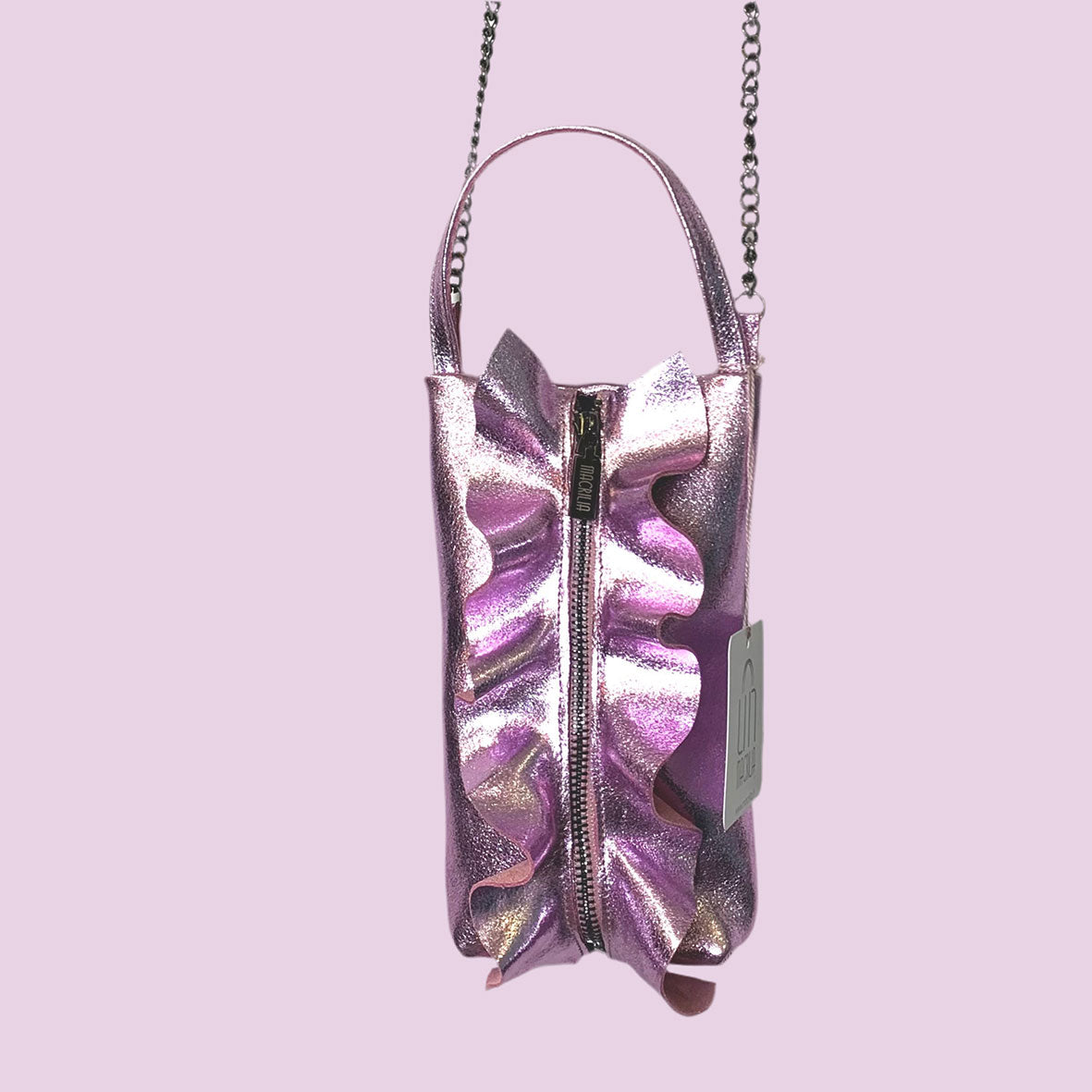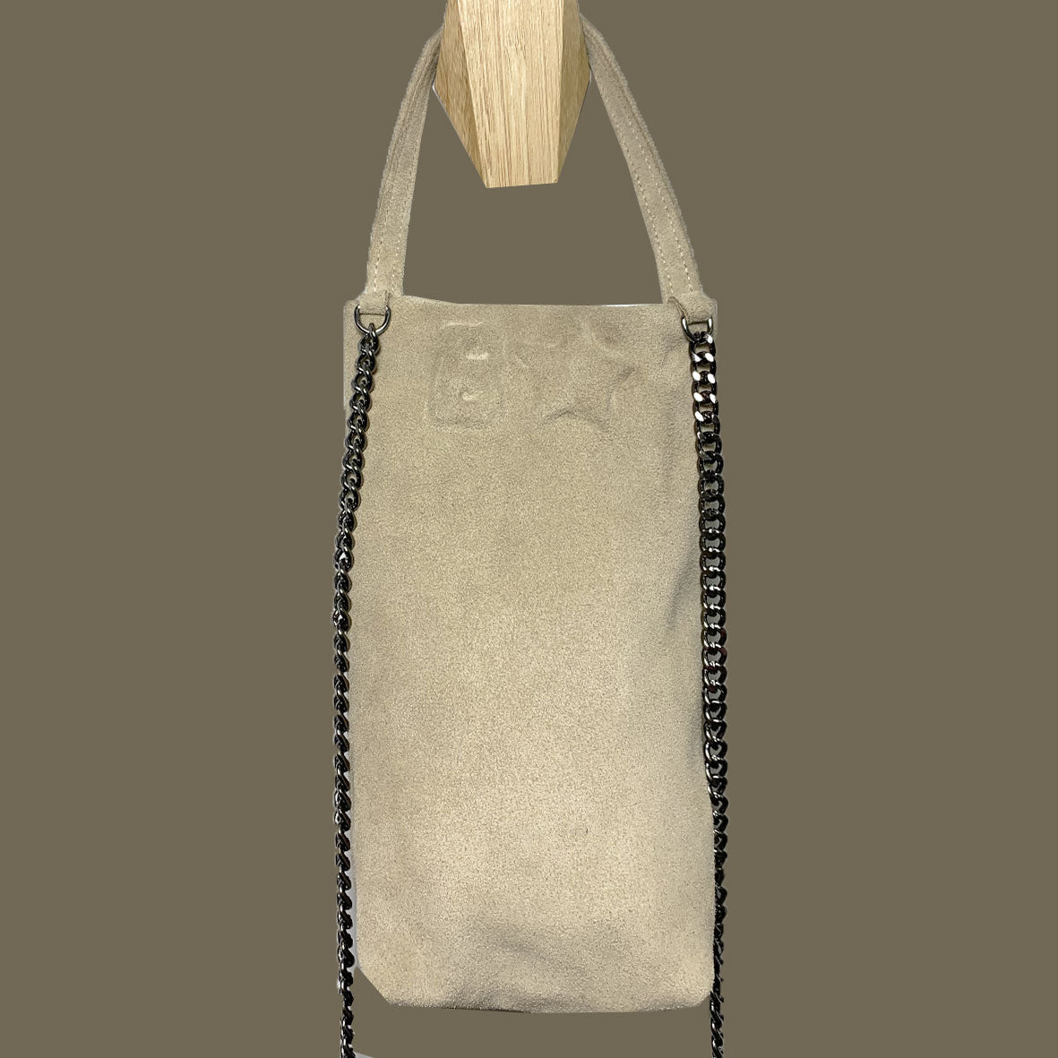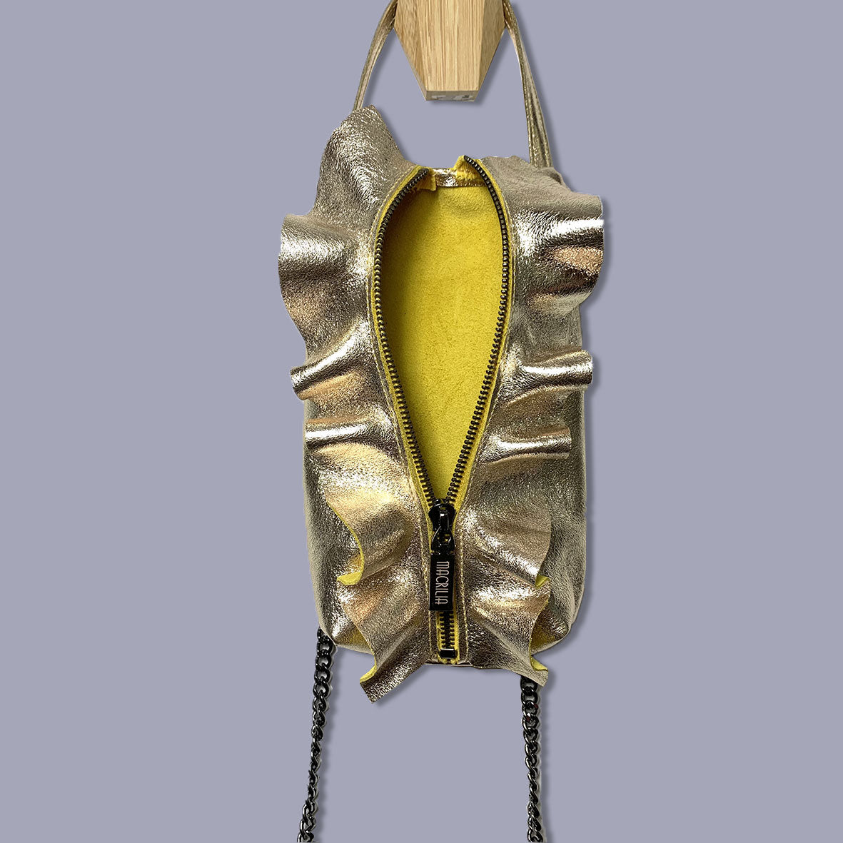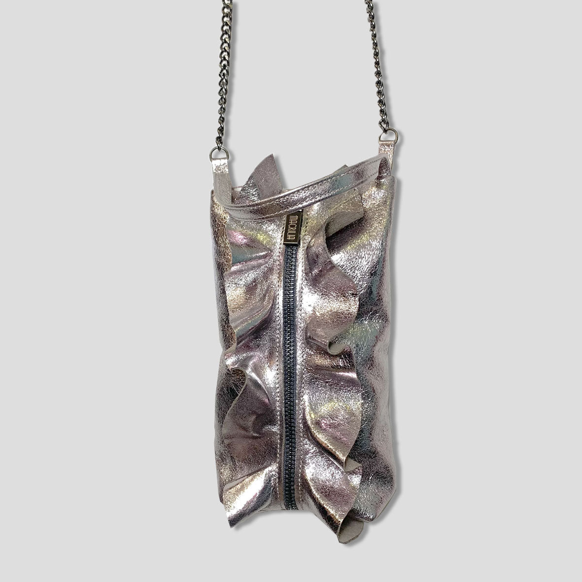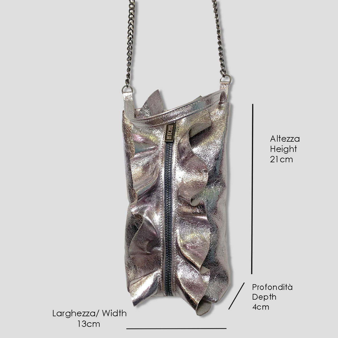 Elegante borsa in pelle. Un particolare piccolo porta cellulare .
