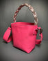 Secchiello in pelle con fondo rettangolare manico corto con treccia e tracolla in pelle 4 cm x 102 cm